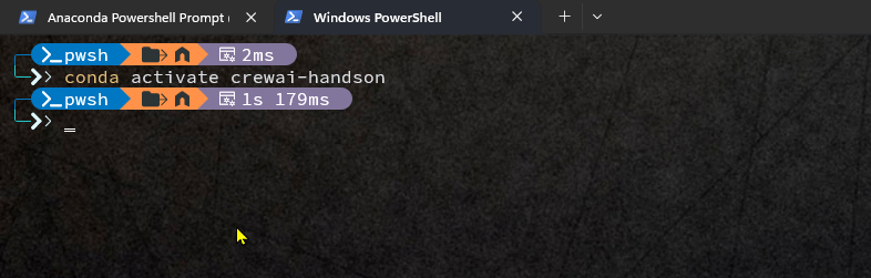 We’ll create a new conda environment for crewai. Not a necessary steps but for a safety net, not impacting our existing ongoing conda envionment or python development work due to any dependencies packages or libraries installation.