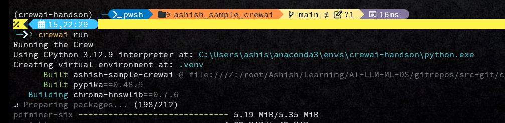 crewai runCrewai will do the build and your crew will run